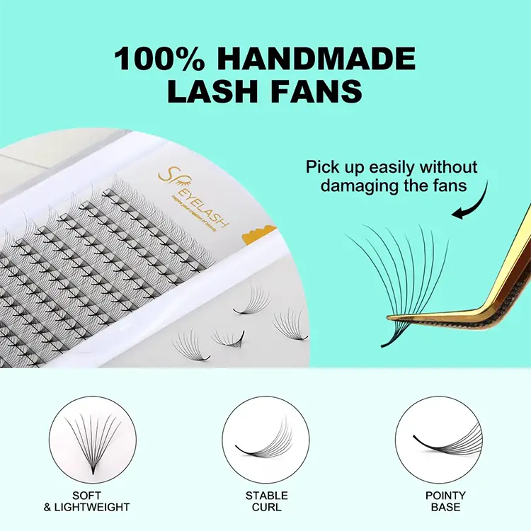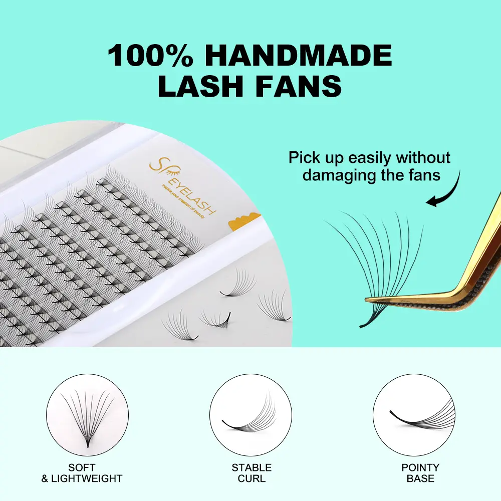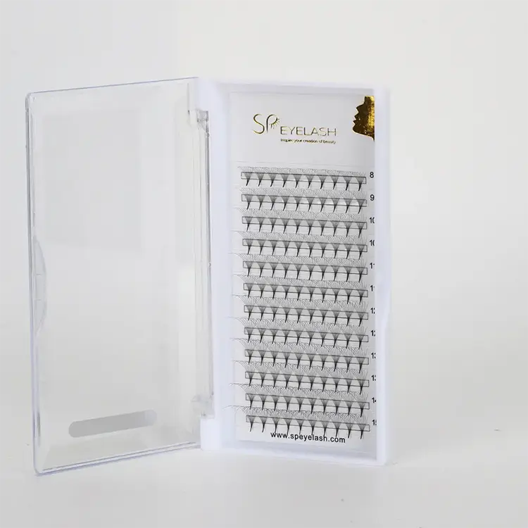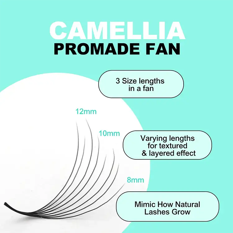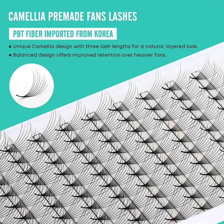 SP Eyelash 8D Camellia premade Fan Lashes est innovative Eyelash effingens productum quod utitur importari PBT fibris a South Korea ad partum a matte holoserica texture. Non solum habet delicata et mollis tactus, sed etiam maintains in crispis et non deformis figura diu. Per sgs salus certification et MSDS materia testis tradit, quod productum praestatur in terminis diuturnitatem et salutem. The unique 8D layered design allows eyelashes to present a naturally blooming camellia shape, with two fan-shaped options: narrow and wide, far exceeding the density of ordinary products on the market, easily achieving a dense and plump makeup effect.
